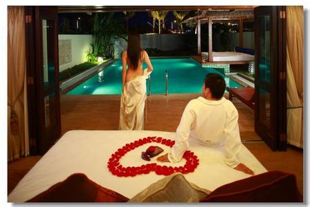 | 备注:每栋别墅独享一房,一小型客厅,一露天淋浴,一室内淋浴,一室内超大特制圆形浴缸,71平米独立泳池,8平米S |