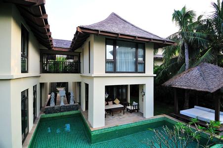 三亚亚龙湾五号度假别墅酒店位于亚龙湾国家AAAA级旅游度假区内,系当前中国首家超大型至尊海滨度假别墅区。它是由三亚志明置业有限公司投资的一家五星级度假别墅酒店,由108栋独具热带浓郁巴厘岛风情的园林别墅(含1栋会所)组成。 酒店总占地面积200亩,总建筑面积4.5万平方米。其中别墅建筑面积36000平方米;会所面积8000平方米;绿地面积95000平方米,绿化率达71%;并建有约14000平方米的人工湖泊。 酒店与大海相临,汇聚人脉,尽享上流生活贵胄之尊;与高尔夫球场互倚,吸纳广袤大地之灵气,成就一方纯美俊景于眼前。 酒店四周热带雨林掩映,珍稀植物错落林立。依托亭、台、楼、湖、池、丘陵、植被、景观等诸多元素,营造立体建筑空间和丰富园林景观,视野开阔,自然通畅。室内外相互融合、相互映衬,打破束缚、一气呵成。中央水系回漩漫绕。单体别墅各具特色,每户均有私家庭院及泳池(60—170平方米不等),墙体采用大面积敞开式,最大限度开阔视野,雅趣共赏。 酒店建筑风格汲取巴厘岛及东南亚建筑精华,将建筑主体适当分离,室内室外互融,通透敞亮。庭院内莲花池引路,泳池、草亭、连廊等错落有致,与主体建筑交相辉映。露天浴室,巧于结合,室内外相互贯通、穿插却又不失私密性——“坐享一湾海边的香格里拉,沉醉一个世外的人间瑶池。” |