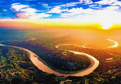 永和黄河乾坤湾风景名胜区,位于全国最美的十大峡谷之一晋陕大峡谷之中,是九曲黄河的核心景区。它北起永和关、南至于家咀,涉及南庄乡、打石腰乡和阁底乡,总面积210平方公里。 这里是中华龙之源。黄河流经永和68公里,自北而南形成英雄湾、永和关湾、郭家山湾、河浍里湾、白家山湾、仙人湾和于家嘴湾七个大湾,统称为黄河乾坤湾。从空中俯瞰,乾坤湾就象一条蜿蜒盘旋、鳞光闪闪的“巨龙”在群山间飞腾。